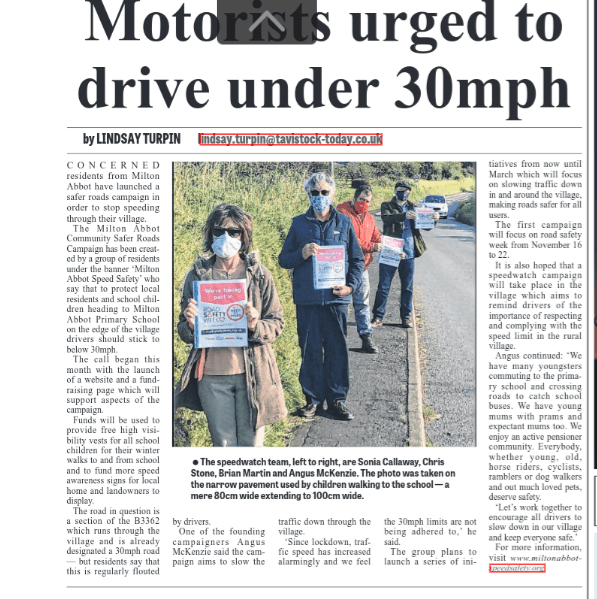 Press Milton Abbot Resident Uncategorized October 22, 2020 1 Minute We were fortunate to have Lindsay Turpin, a local journalist support our cause recently in the Tavy Times (22 October 2020) Share this:TweetLike Loading... Related Published by Milton Abbot Resident View all posts by Milton Abbot Resident Published October 22, 2020